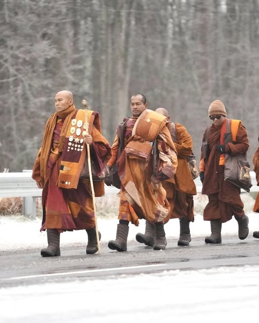 Their path has not been without hardship. In Texas, an accident involving the monks’ support vehicle left two monks injured, and one lost a leg; the group chose to continue walking.